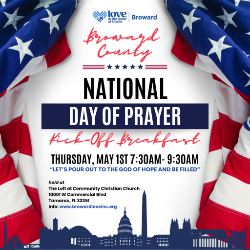 Join us on a Zoom Call for the National Day of Prayer on Thursday, May 1, 2025 as we pour out our hearts together for our nation (Romans 15:3). We will be praying for America, the State of Florida, Churches, Family, Education, Business, Military, Media, and Government. Your prayer is vital as we seek God's mercy and Grace for our country, and pray that He would heal our land.