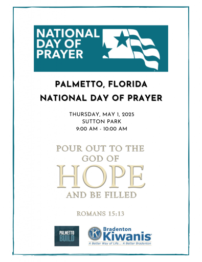 Join us on a Conference Call for the National Day of Prayer on Thursday, May 1, 2025 as we pour out our hearts together for our nation (Romans 15:3). We will be praying for America, the State of Florida, Churches, Family, Education, Business, Military, Media, and Government. Your prayer is vital as we seek God's mercy and Grace for our country, and pray that He would heal our land. Conference Call Phone Number: (434) 300.4128 Access Code: 83505#
