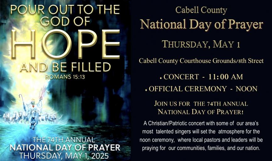 Join us for National Day of Prayer at The Mound in South Charleston. 12p