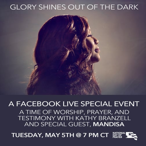 If you were unable to join us on May 5th for the night of worship, prayer, and testimony with Kathy Branzell and special guest Mandisa, don't miss it! Click here to watch. SHARE the video on Facebook with your friends and family--they will be blessed!